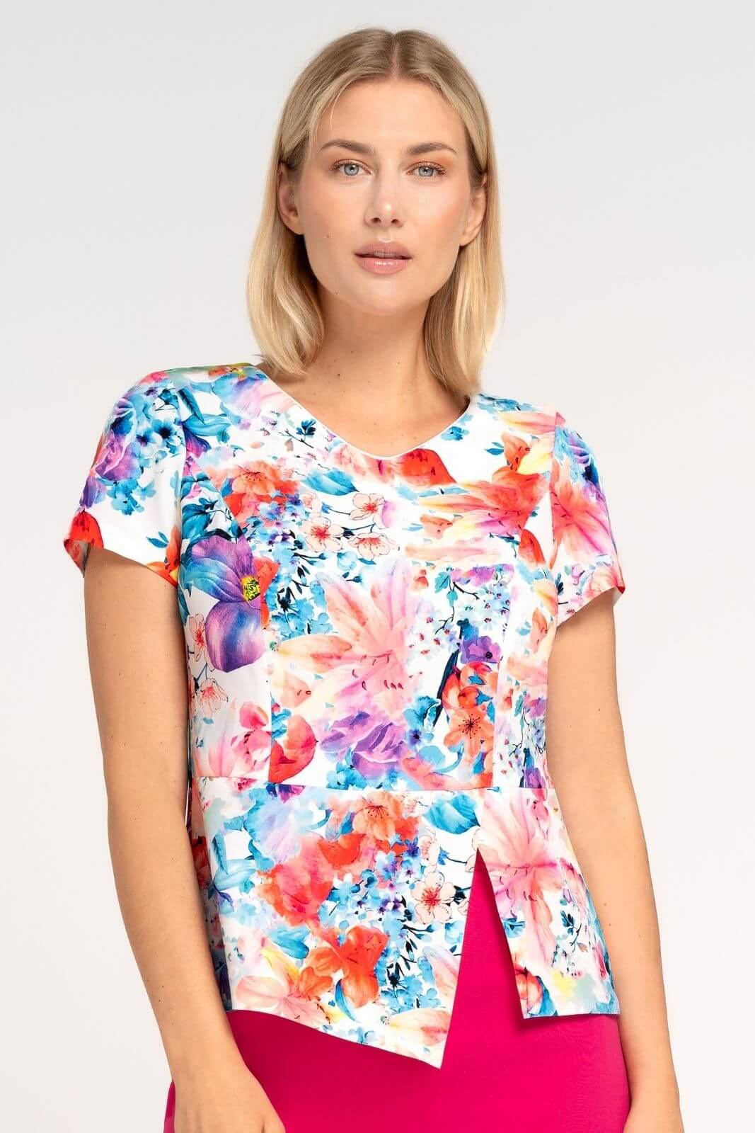 Bluse in Ecru mit buntem Blumenmuster und Schößchen – Kaia (1 szt.)